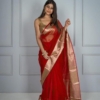 Beautiful Soft Nylon Organza Jacquard Saree With Exclusive Colors and Unstitched Blouse For Women Wedding Wear Party and running use also