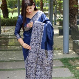 Banglori Handloom raw silk saree with rich weving pallu and running blouse piece