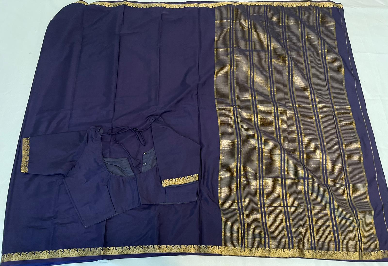 Fancy crepe Mysore silk saree along with stitched blouse and pico(fall)
