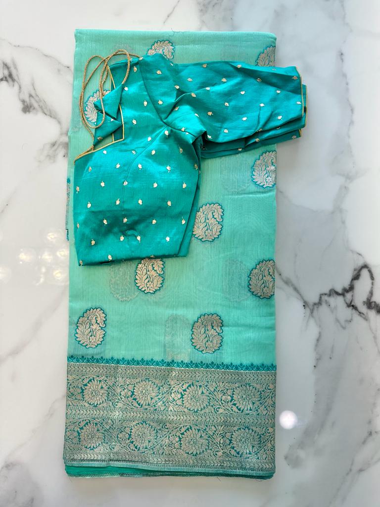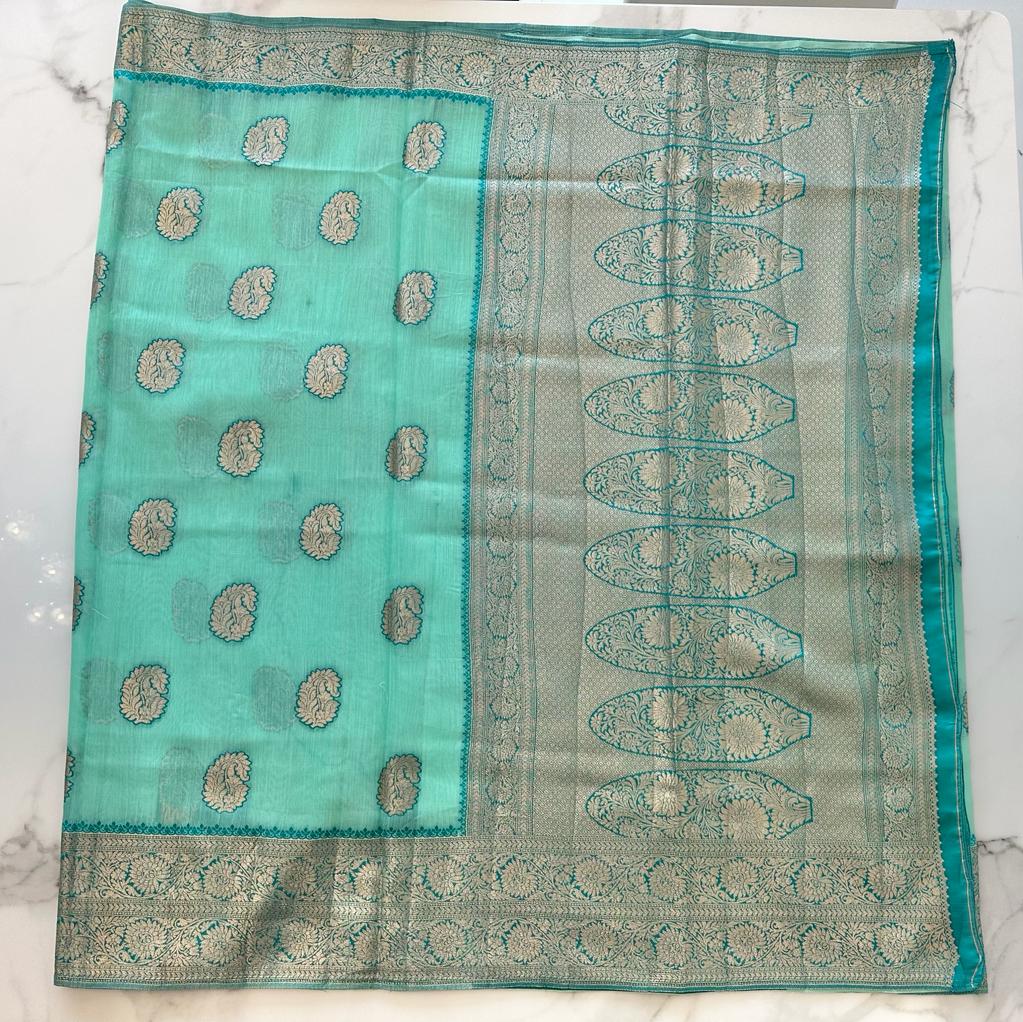 Fancy Silk Mango Design Sea Gr...