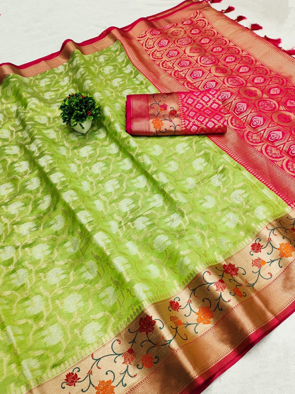 Beautiful weaving all over the Saree with Designer Brocade Silk blouse piece & Tessels attached at Pallu