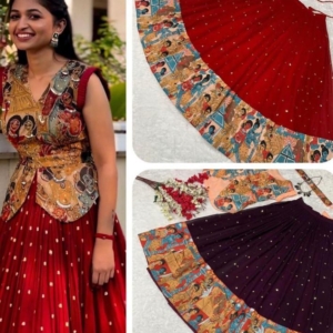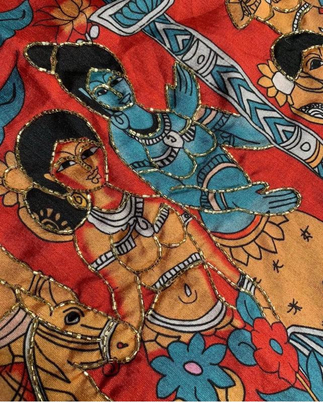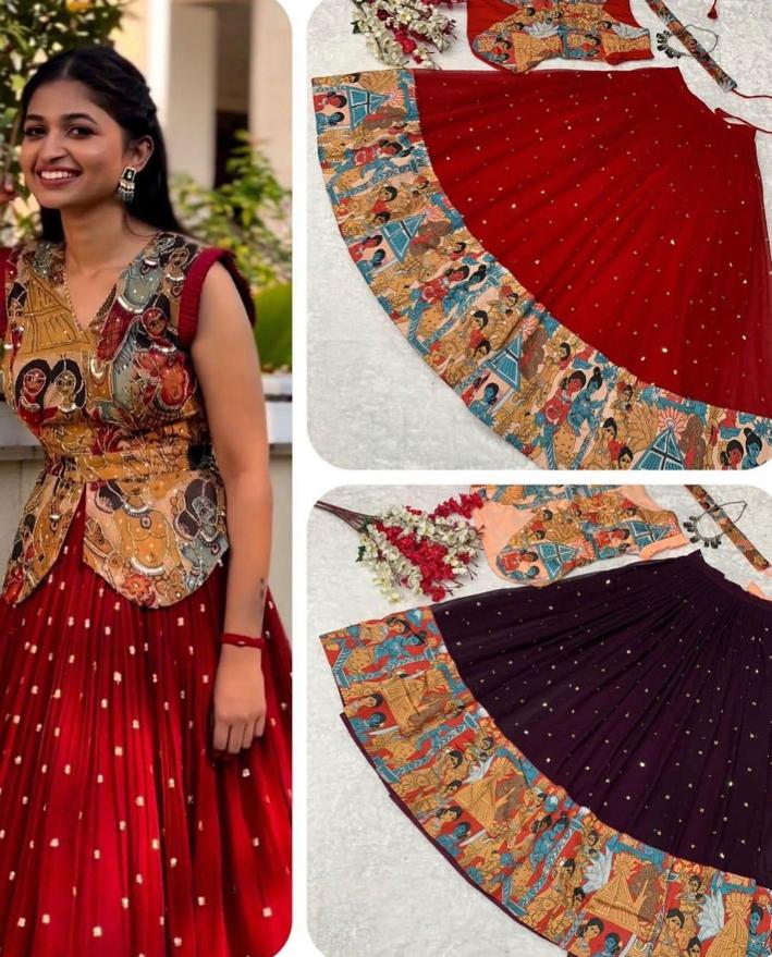 Kalamkari Bordered Red color Lehenga with Stitched All Over Kalamkari Top Along with Hand Work