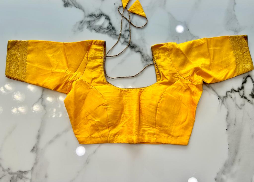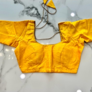 With plain running “stitched blouse” as shown in the picture for the yellow saree