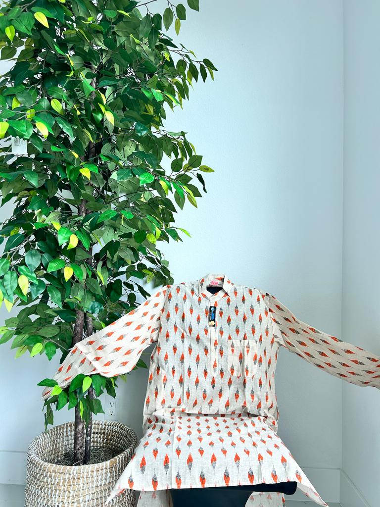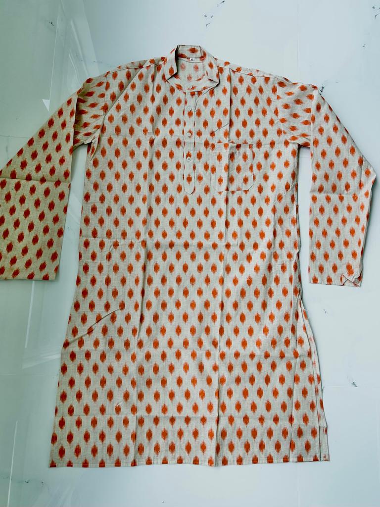 Pure Cotton Ikkath Kurta For Men
