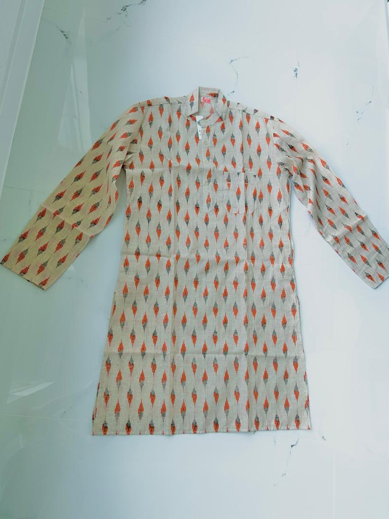 -> Orange and Grey Design on Cream Color Kurta -> Size: 40(M)