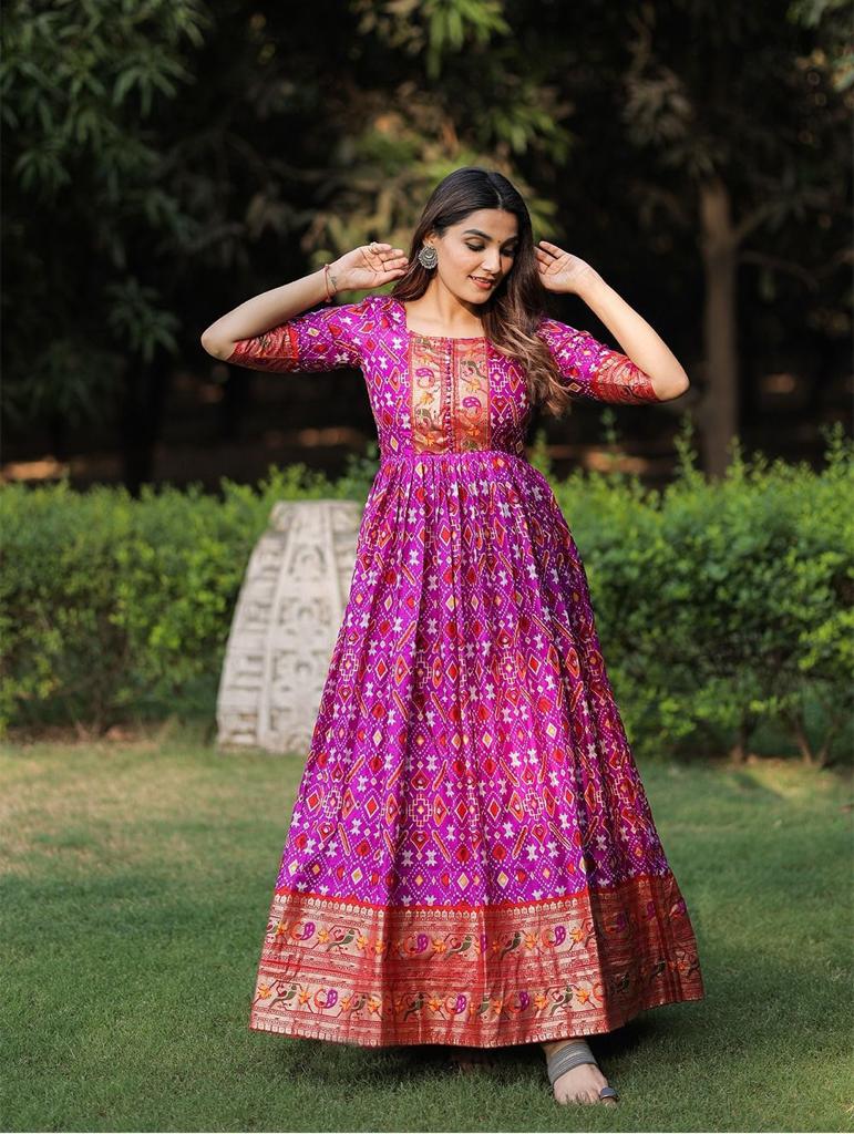 Gown Work : Patola Paithani Print With Foil work