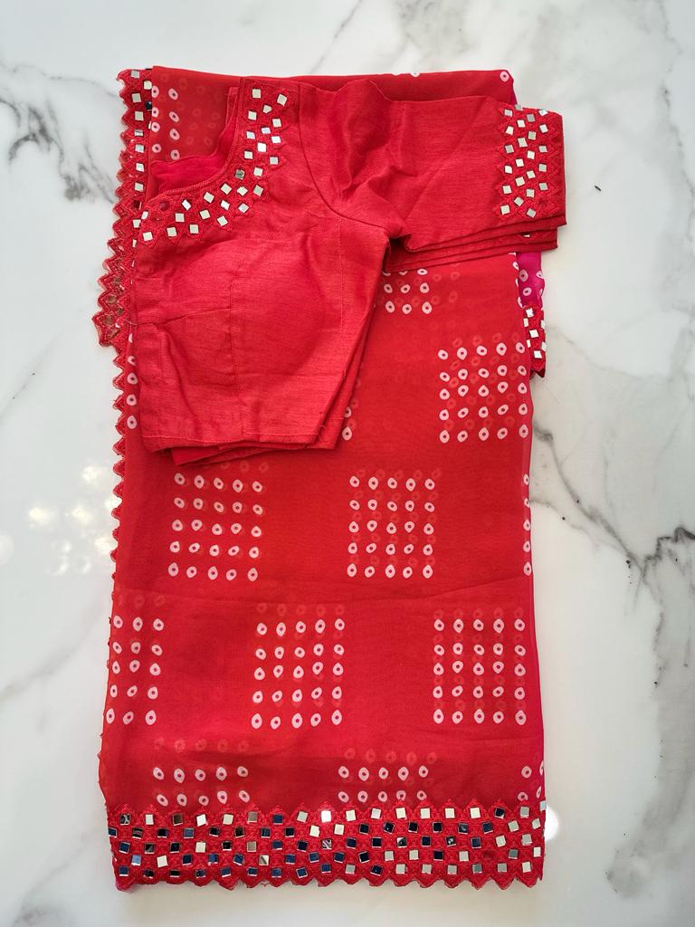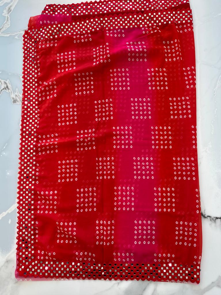 Soft Silk Saee With Mirror Work Border All Over The Saree and Bandhani Print