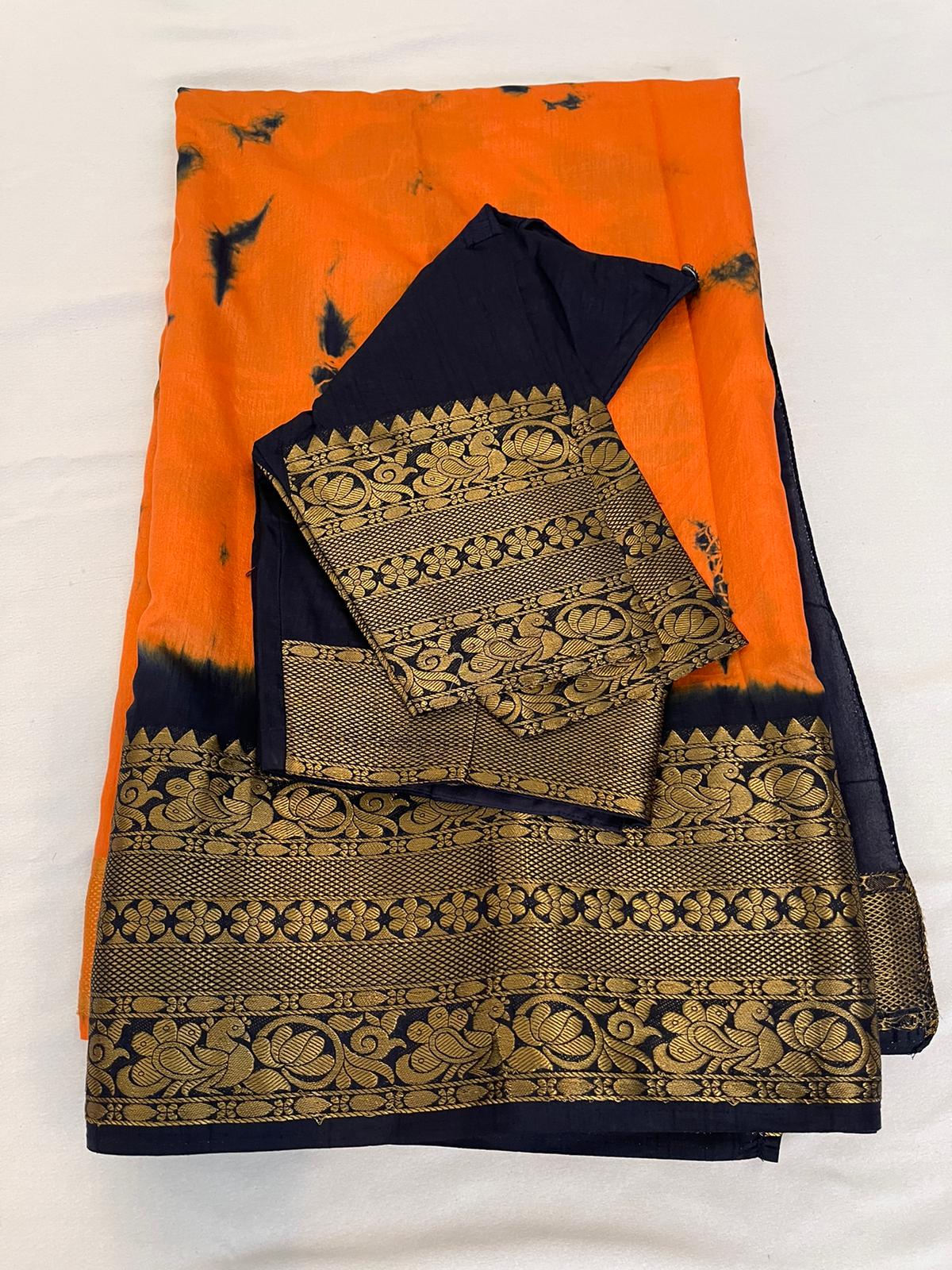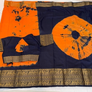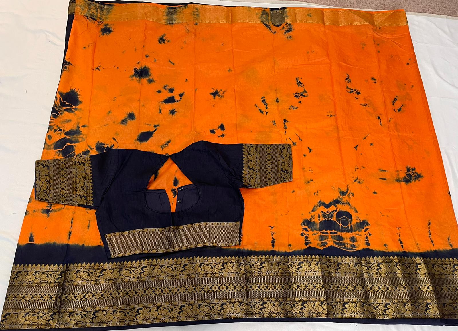 Tie n die soft Tussar silk with shibori dyeing saree along with stitched contrast blouse and pico(fall)