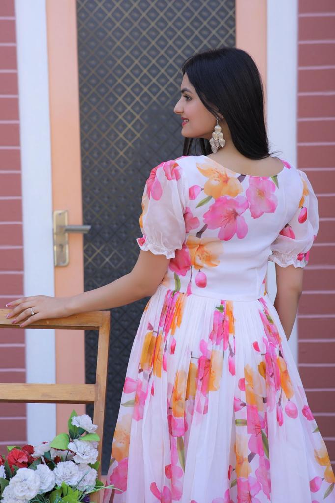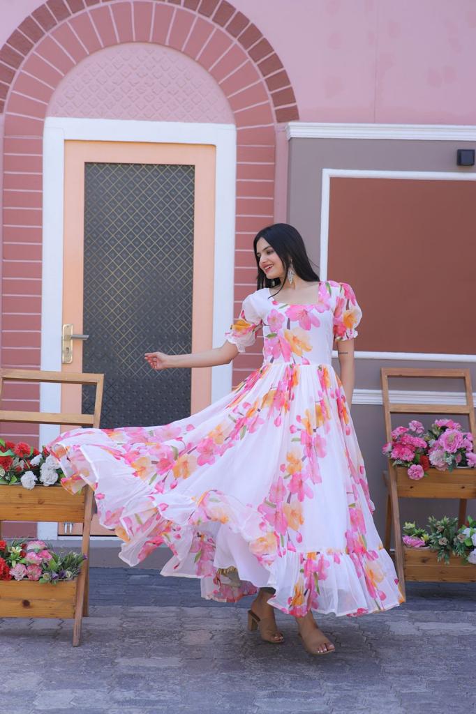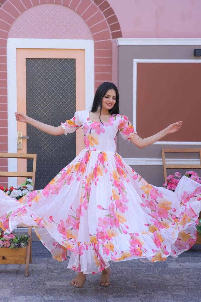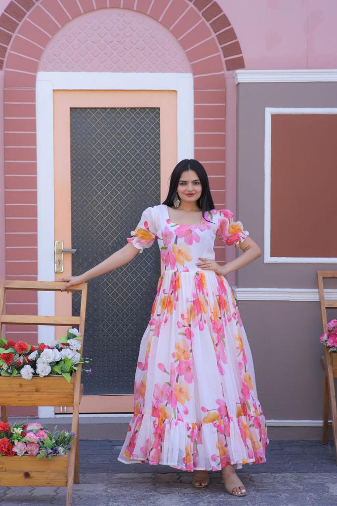 Premium Readymade Tabby Silk Floral Designer Long Frock—omz
