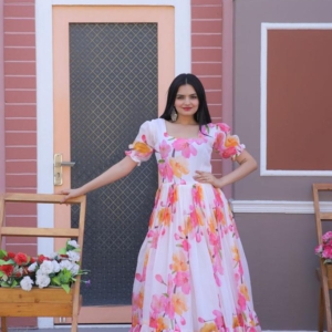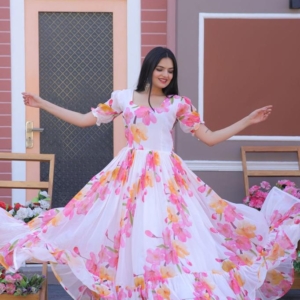Fabric:- Tabby Silk With Rich Flower Digital Print work